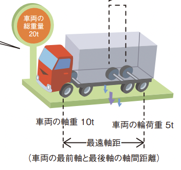 これらの制限値を超える場合に、特殊車両通行許可が必要となります。
