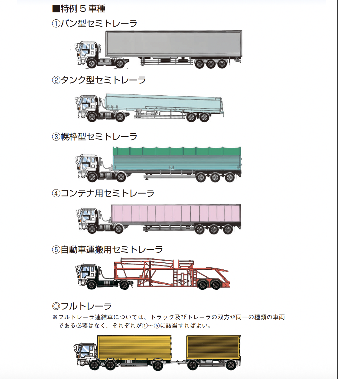あおり型セミトレーラやスタンション型セミトレーラも特車になります。
